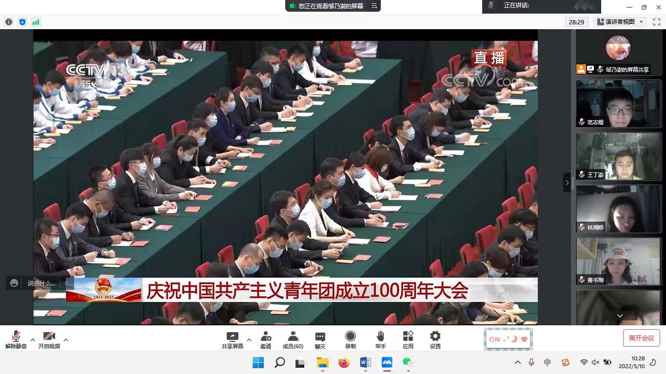 5月10日上午,庆祝中国共产主义青年团成立100周年大会在北京人民大会堂隆重举行,中共中央总书记、国家主席、中央军委主席习近平出席大会并发表重要讲话。应用经济学院第一时间组织全院党团支部、学生组织、行政班级收看了庆祝大会直播,学习领会习近平总书记重要讲话精神。