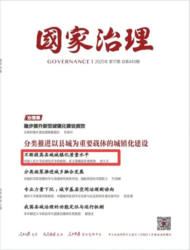 城镇化是现代化的必由之路,是世界各国现代化的共同特征。作为经济结构转型和社会形态变迁的关键载体,城镇化是中国式现代化的重要组成部分。2025年召开的中央城市工作会议提出:“我国城镇化正从快速增长期转向稳定发展期,城市发展正从大规模增量扩张阶段转向存量提质增效为主的阶段。”“分类推进以县城为重要载体的城镇化建设”。深入贯彻中央城市工作会议精神,分类推进以县城为重要载体的城镇化建设,需要根据不同类型县城的发展基础、资源禀赋和区位条件等,因地制宜、精准施策,提升县城发展质量。