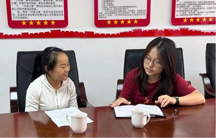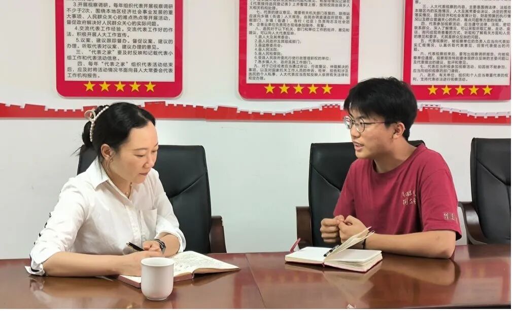 ▲中国人民大学应用经济学院本科生龚舒凯访谈古蔺县金兰街道党工委书记熊霞