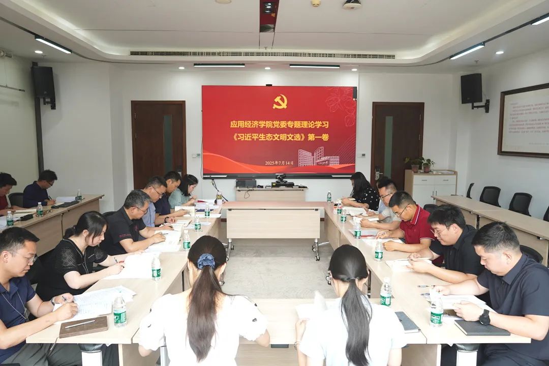 7月14日,应用经济学院党委第一时间召开党委理论学习中心组(扩大)会议,专题学习《习近平生态文明文选》第一卷,并结合学院实际工作开展专题研讨和工作部署。