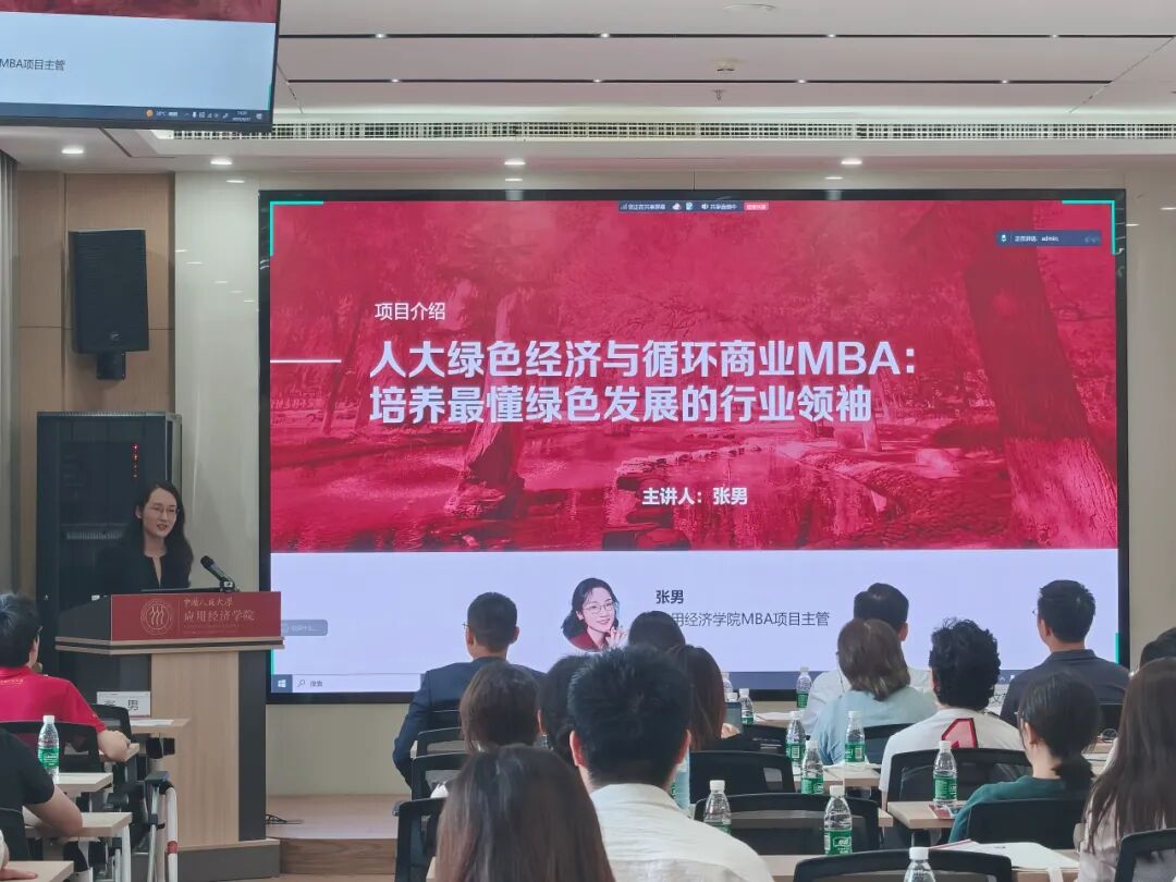 张男围绕“培养最懂绿色发展的行业领袖”这一目标以及项目“顶天+立地+出海”三位一体的核心优势,详细介绍了项目的战略意义、课程师资、招生政策和奖学金方案等,让参会者对项目有更全面的了解。
