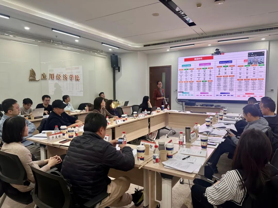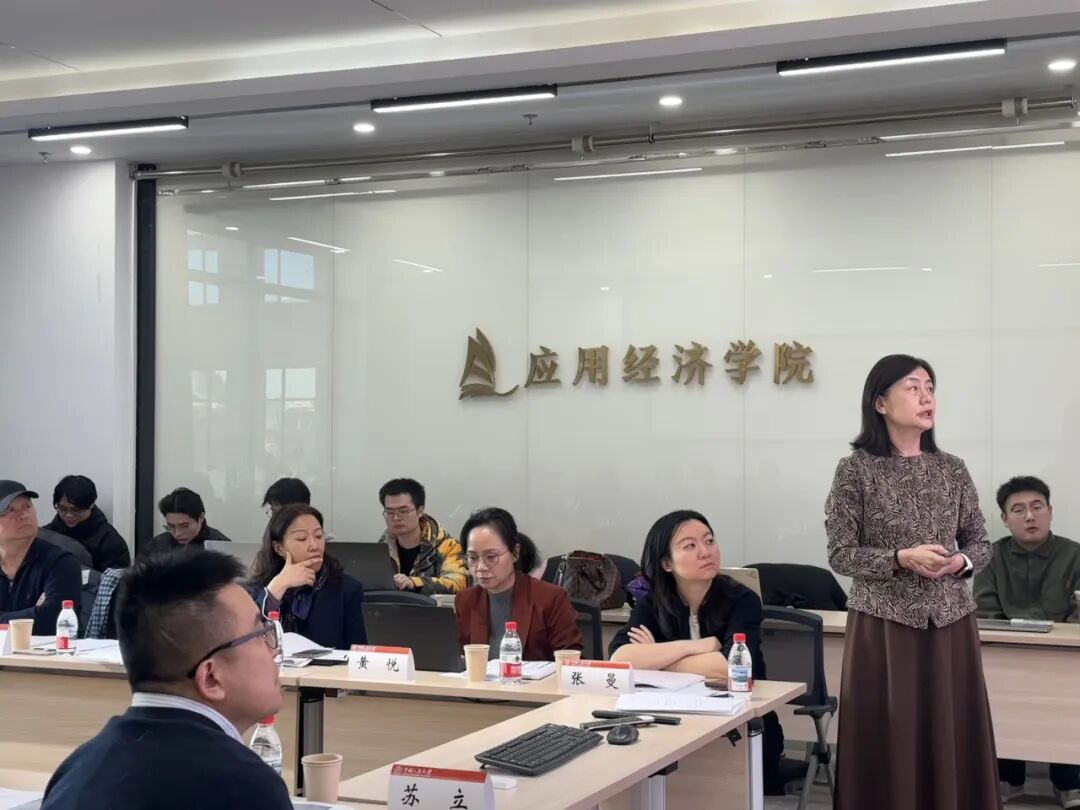 ▲中国人民大学应用经济学院黄隽教授汇报课题一进展