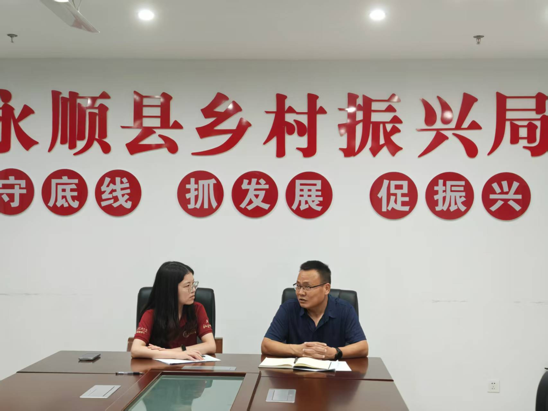 ▲中国人民大学应用经济学院博士生谢呈嫡访谈永顺县副县长鲁开发