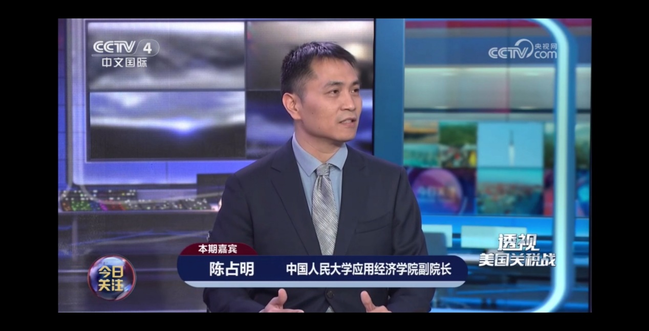 4月9日,中国人民大学应用经济学院陈占明教授接受中央广播电视总台《今日关注》栏目采访并发表观点。