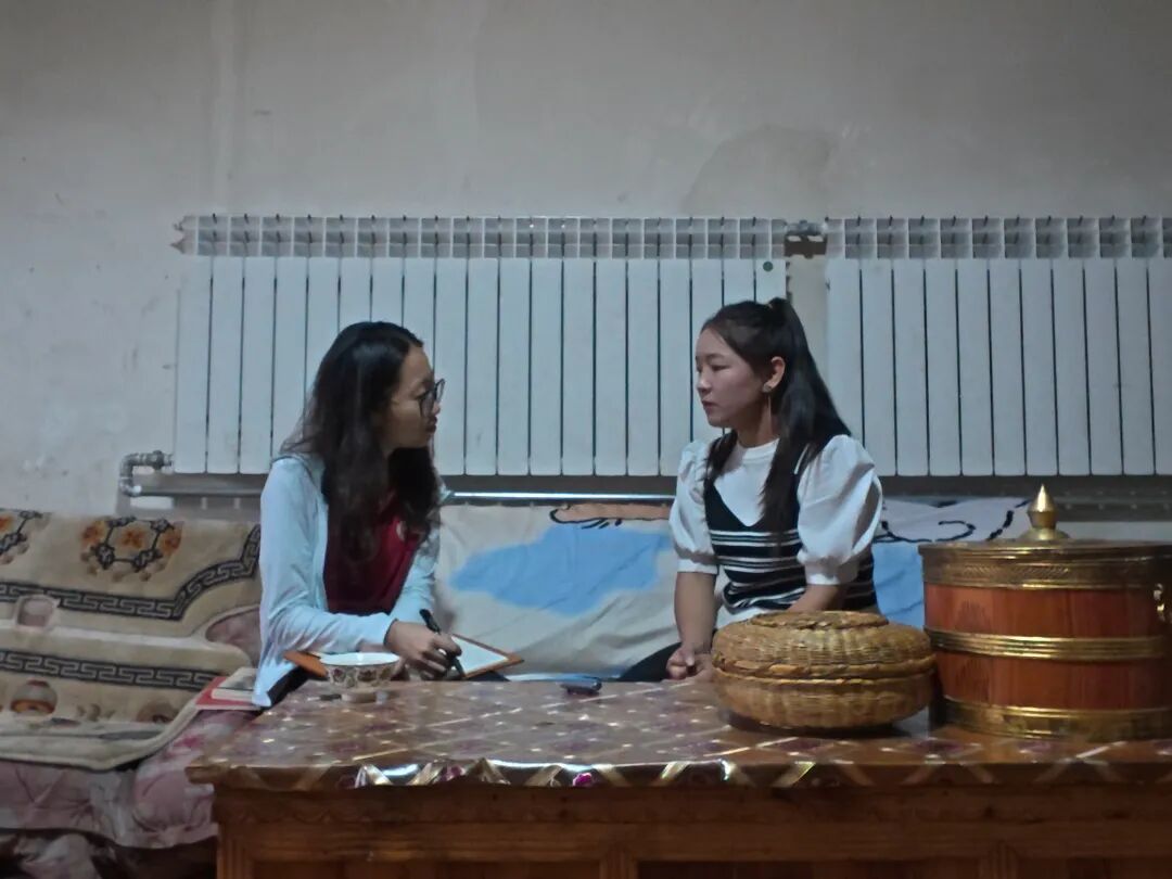▲中国人民大学应用经济学院本科生魏泓昱访谈贡觉县桑珠荣村驻村第一书记张兴斌