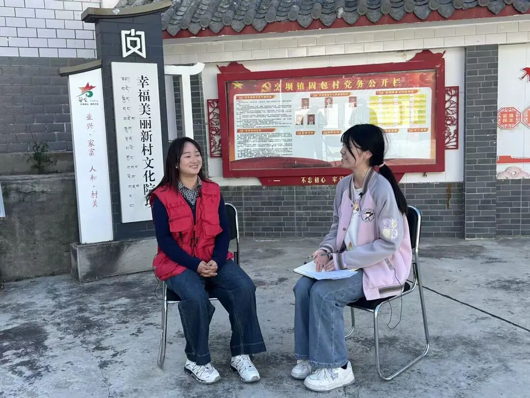 ▲本科生杨紫涵访谈烹坝县固包村第一书记潘荣霞