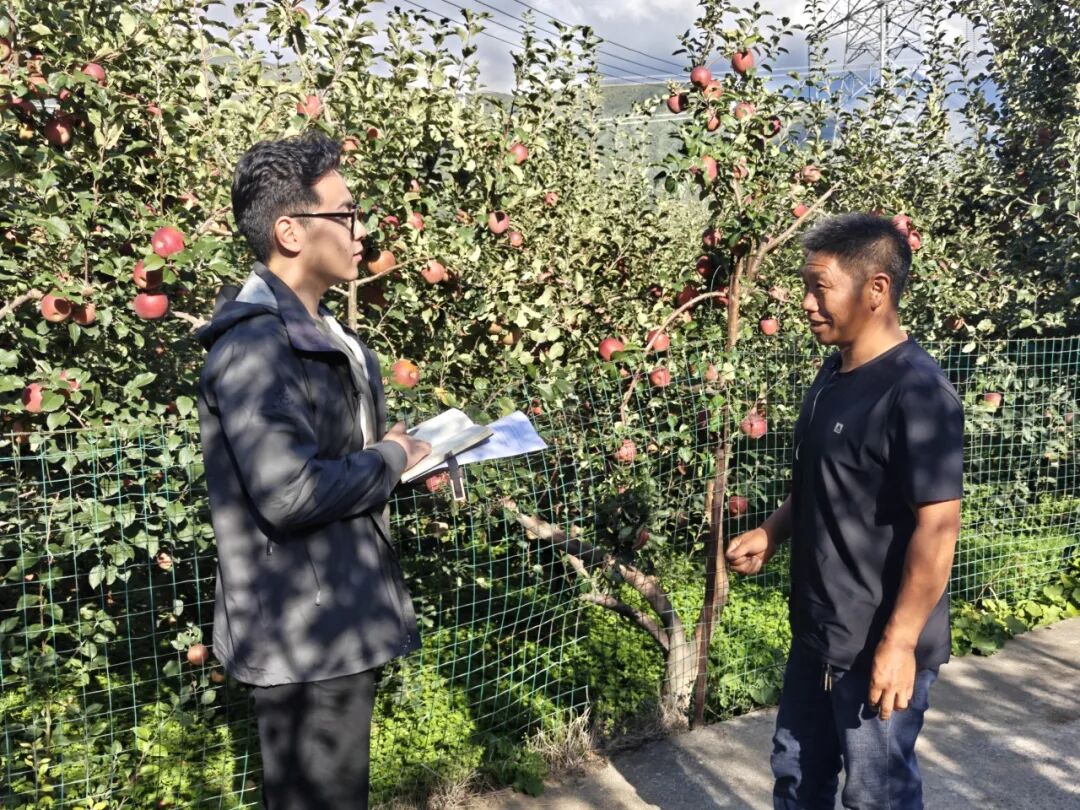 在人才培养方面,固包村构建起“本土培育+外部引进+实践赋能”的立体化体系,为产业发展注入持久动力。州人社局派驻的第一书记潘荣霞、西南医科大学派驻的驻村队员贾力可、泸定县卫生健康局派驻的驻村队员吴芯羽组成的驻村工作队,充分发挥派出单位资源优势,搭建人才培育桥梁。同时,对接县农业农村局组建技术专家团队,建立“一户一技术指导员”制度,定期上门开展疏花疏果、病虫害绿色防控、果实分级等实操培训;邀请省内外苹果种植能手、农业产业带头人开展专题讲座,分享规模化种植、品牌化运营经验,帮助村民拓宽发展视野。
