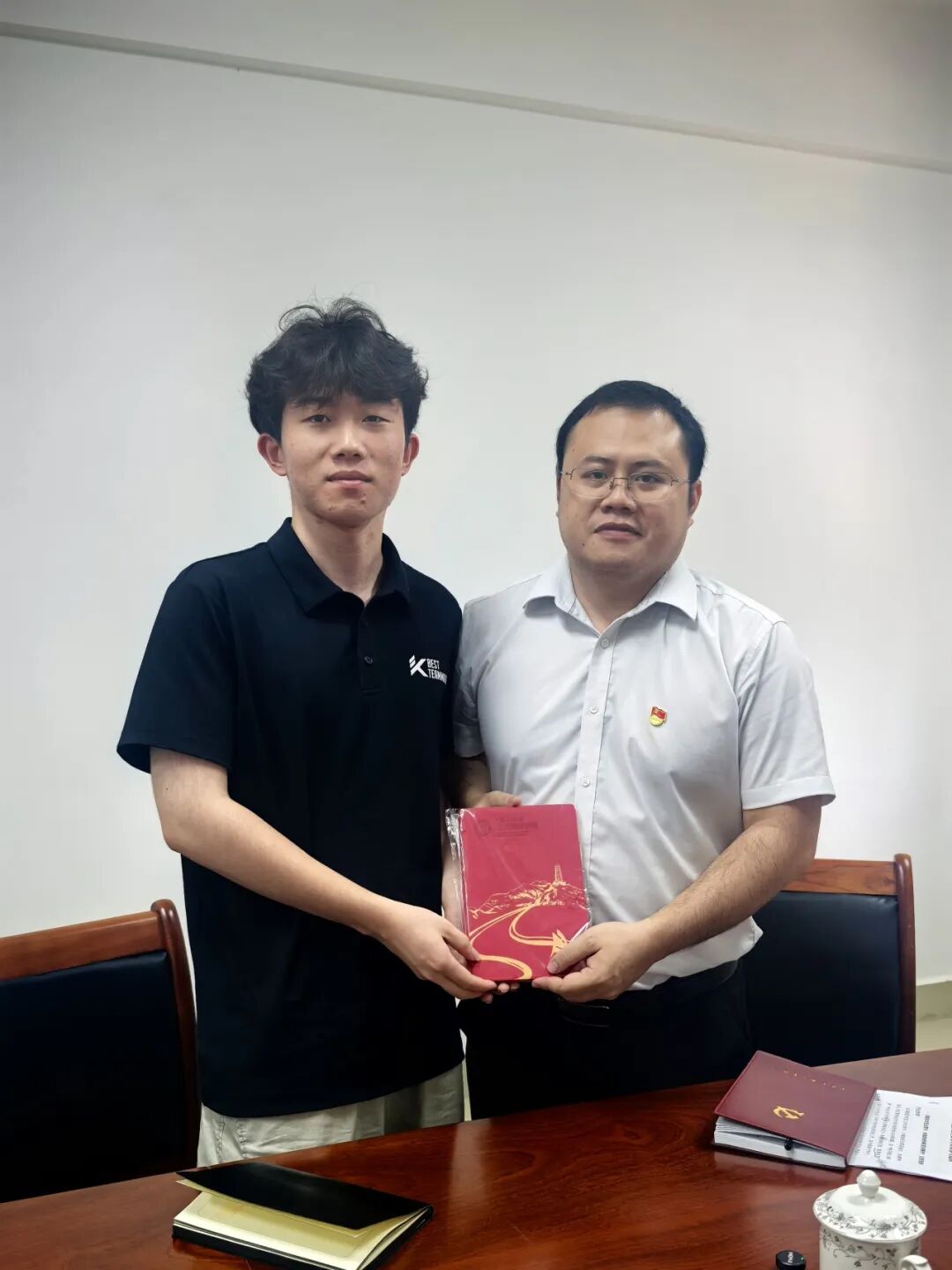 ▲应用经济学院本科生徐才疆访谈五指山市委巡察组正科级巡察专员(原市扶贫办主任)赵茂冰并赠书留念