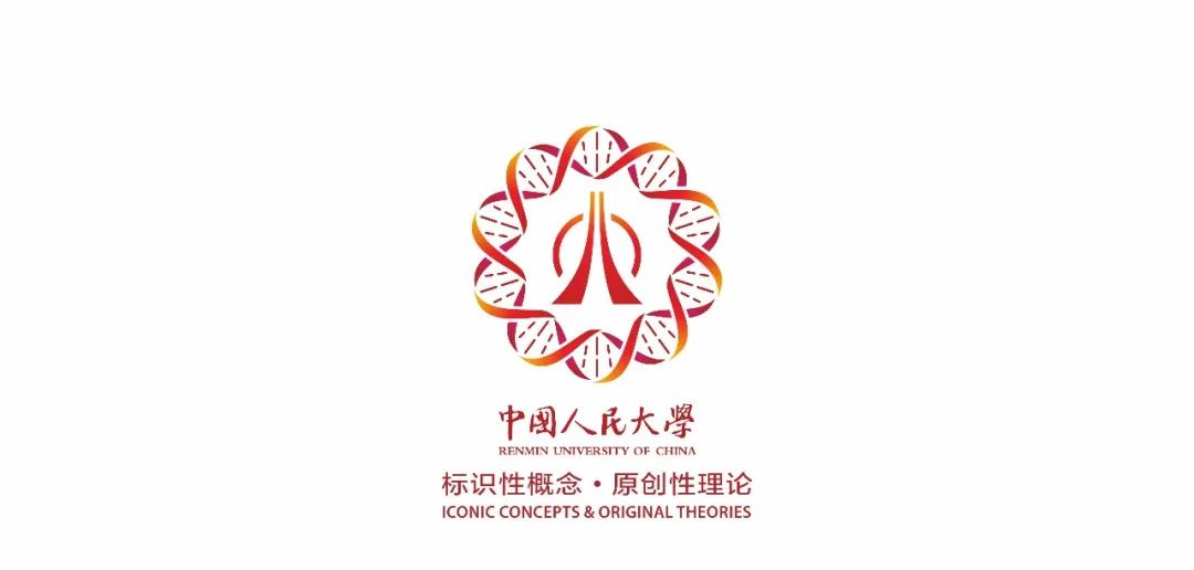 “标识性概念·原创性理论”标识外圈以DNA螺旋为灵感,象征标识性概念与原创性理论的融合。中央以“人”字与篆书“大”字融合,体现学校坚持以人民为中心、薪火相传、不断创新的精神追求。标识的整体向上动势,象征着中国人民大学在建设中国特色世界一流大学征程上,勇担时代重任、持续开拓未来的信心与决心,彰显了学校以知识创新驱动发展的责任担当。