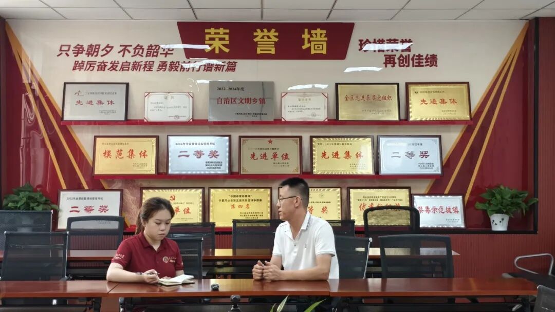 ▲应用经济学院本科生张烁阳访谈同心县豫海镇党委书记马占文