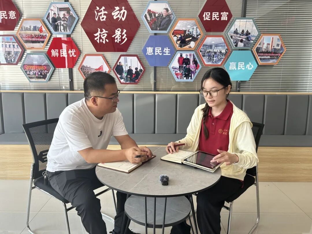 ▲应用经济学院本科生温艺玲访谈豫海镇罗山社区书记马峰