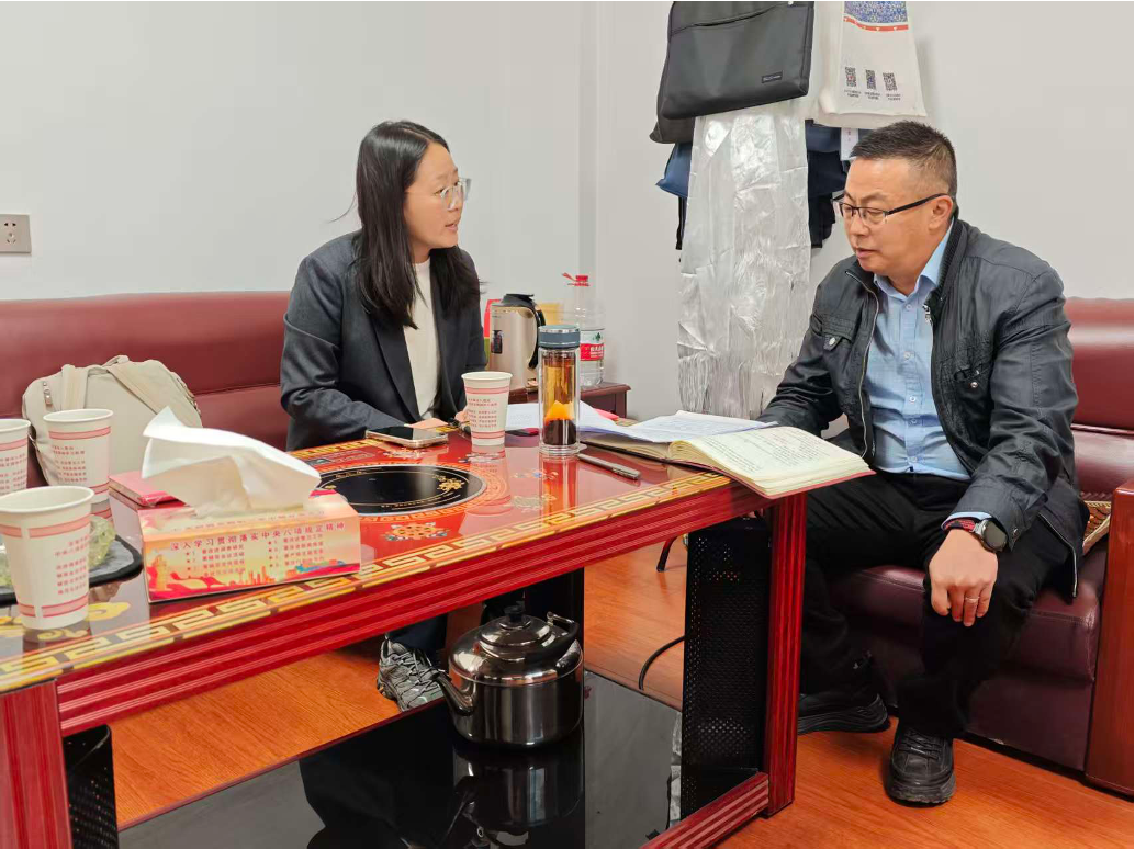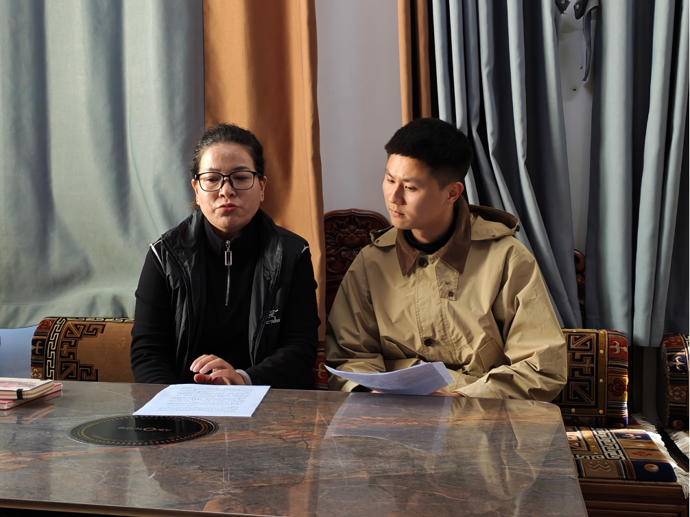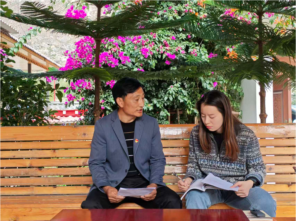 ▲中国人民大学和平与发展学院王丽媛访谈得荣县农牧农村水利和科技局副局长斯郎拥忠