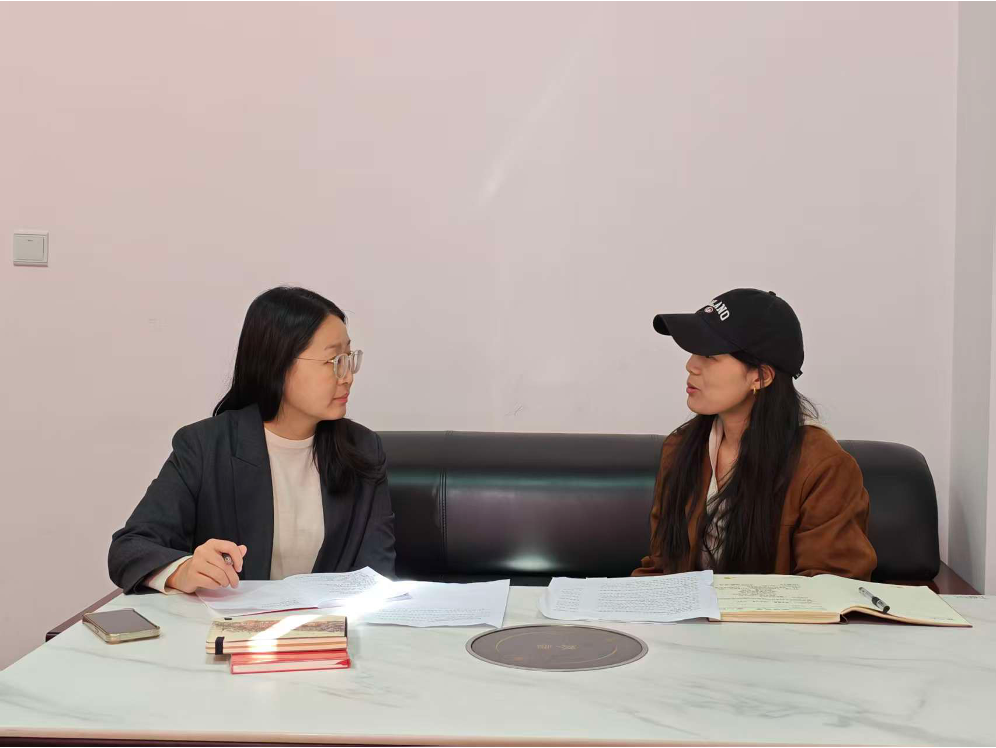 ▲中国人民大学和平与发展学院王丽媛访谈得荣县县委常委、县政府副县长缪荣