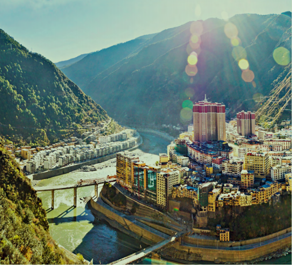 ▲雅江县城矗立在雅砻江河两岸(图源:《雅江县扶贫志》)