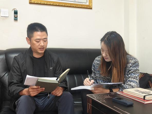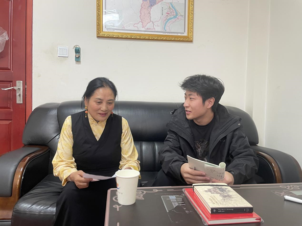 ▲中国人民大学和平与发展学院王丽媛访谈雅江县脱贫攻坚时期脱贫攻坚副主任(现任雅江县信访局局长)降拥彭措