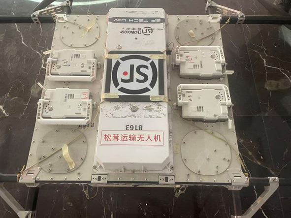 ▲雅江县松茸产业园区内展示的松茸运输无人机