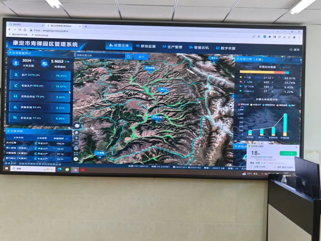 脱贫攻坚以来,甲根坝镇以“规模化种植筑牢根基、科技赋能提升效率、三产融合延伸价值”为思路,将青稞产业打造成乡村振兴的核心支柱。作为康定市青稞产业核心区,该镇投入1.26亿元农牧业专项资金,组建20人农业专家服务队,推动青稞种植从散户模式向规模化、现代化转型。目前全镇稳定青稞种植面积1.6万余亩,通过推广优质品种和标准化种植技术,亩产提升至200公斤,年产量达320万公斤,牢牢守住粮食安全底线。更值得关注的是,镇上建成的康定市数字农业管理系统,实现了产业全链条智能化管控——系统实时接入全市3034个农业经营主体、5.6052万亩经营面积的数据,从耕地墒情监测、智慧农机调度,到农资配送、产品溯源,全程数字化对接,不仅降低了种植成本,更保障了青稞品质的稳定性。