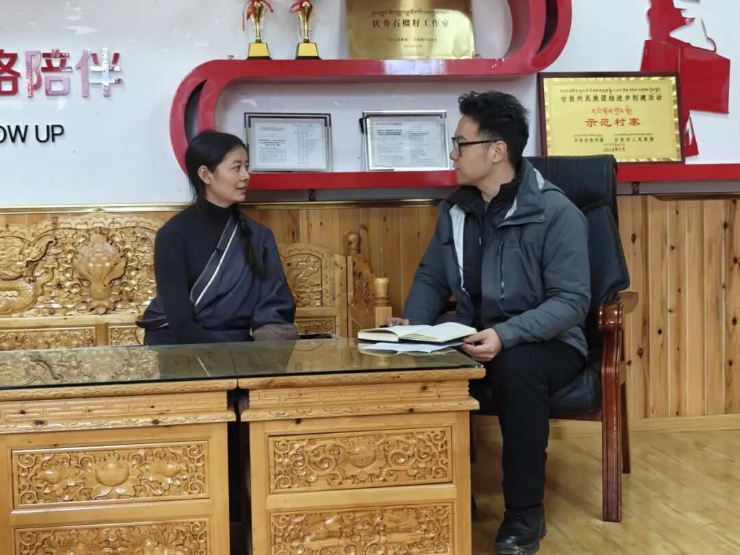 ▲王丽媛老师访谈康定市甲根坝镇党委书记丁真