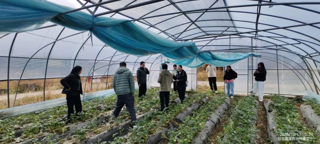 ▲调研团前往康定市呷巴乡铁索村草莓基地调研