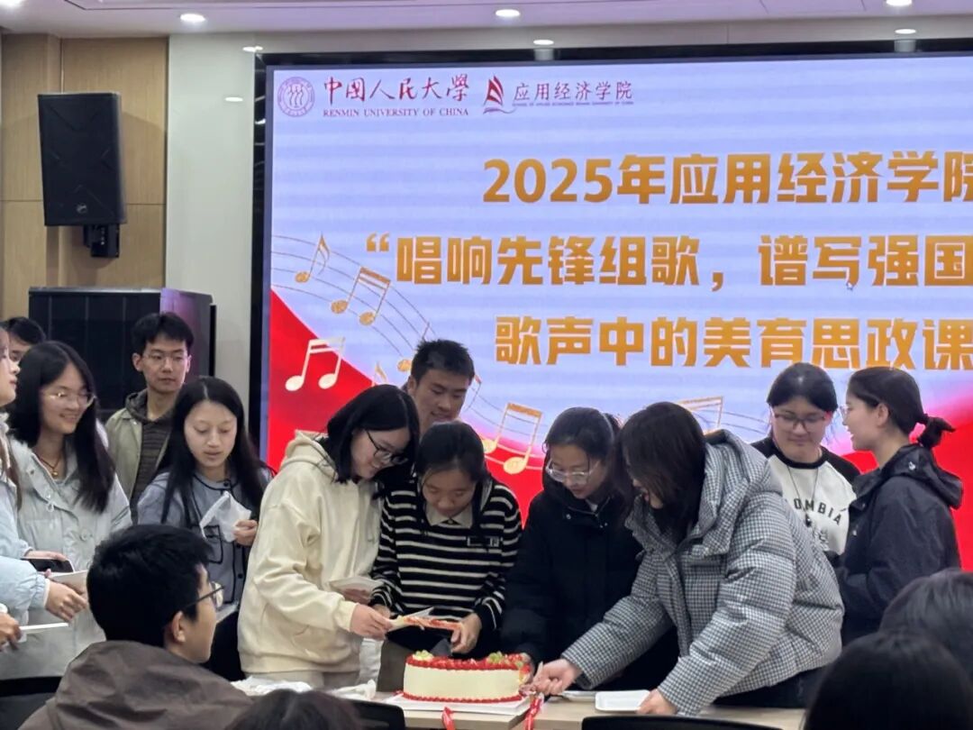 为迎接即将到来的《先锋·人大组歌》音乐舞蹈史诗展演,近日,中国人民大学应用经济学院举办“唱响先锋组歌,谱写强国青春”——歌声中的美育思政课。以思政为魂,以音乐为桥,激励青年学子在歌声中传承红色基因,凝聚奋进力量。