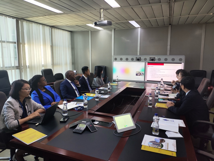 11月20日,代表团访问联合国非洲经济委员会宏观经济、金融和治理司。陈佳莹、吕一飞先后汇报中国人民大学在凝练中国减贫经验、开展“十五五”前瞻研究以及服务安哥拉经济展望方面的成果,与司长斯蒂芬·卡林齐(Stephen Karingi)讨论进一步的合作模式。刘晓明、中国驻非盟使团二等秘书张舰参加座谈会。会后代表团看望在非经委实习的应用经济学院博士生刘可欣。