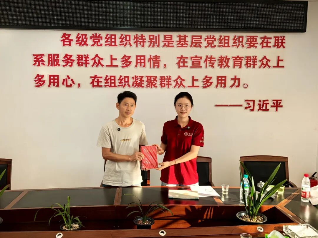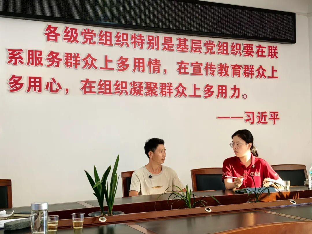 ▲中国人民大学应用经济学院本科生蒋予凡访谈红峰村第一书记郭健锋