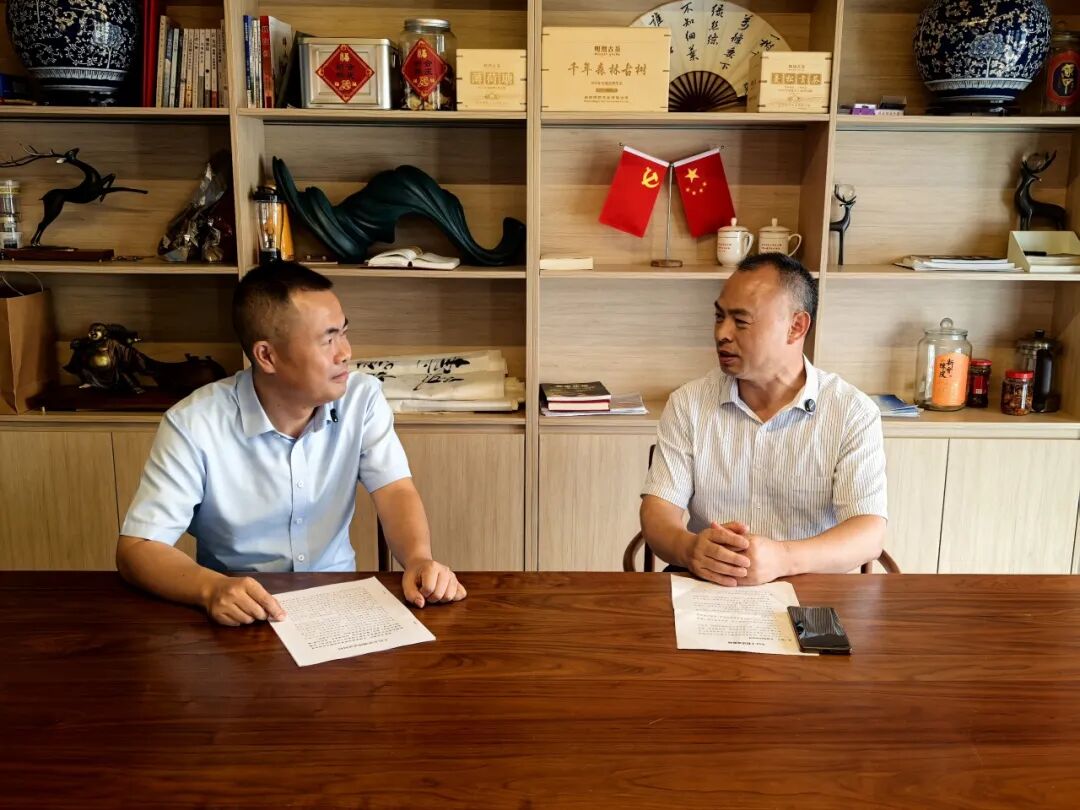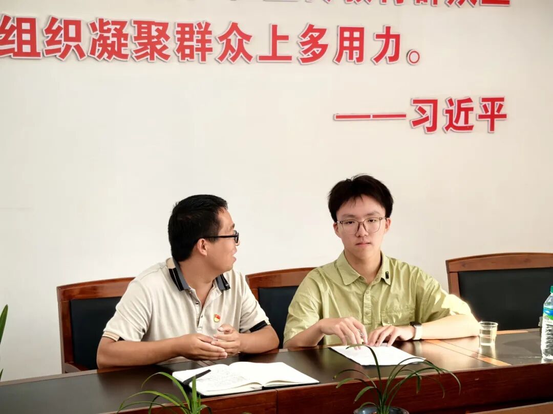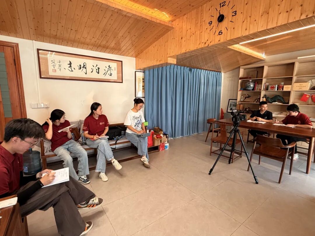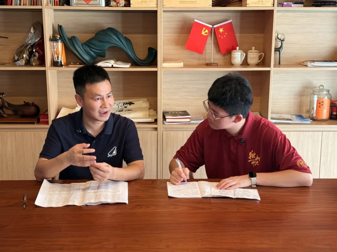 ▲中国人民大学应用经济学院本科生余致凯访谈梓山镇党委副书记、镇长谢鹏