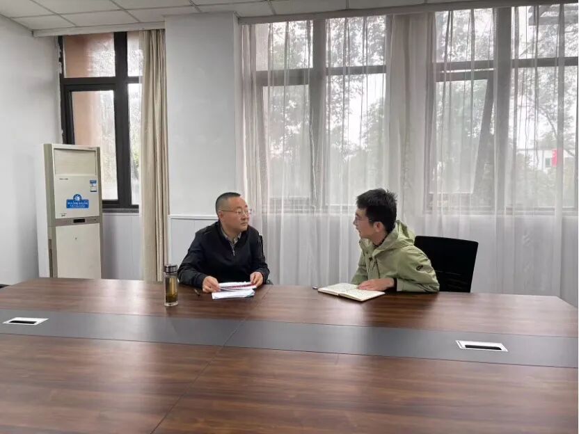 ▲中国人民大学应用经济学院博士生陈荣恺访谈北川县人社局党组书记、局长滕跃清(原曲山镇党委书记)