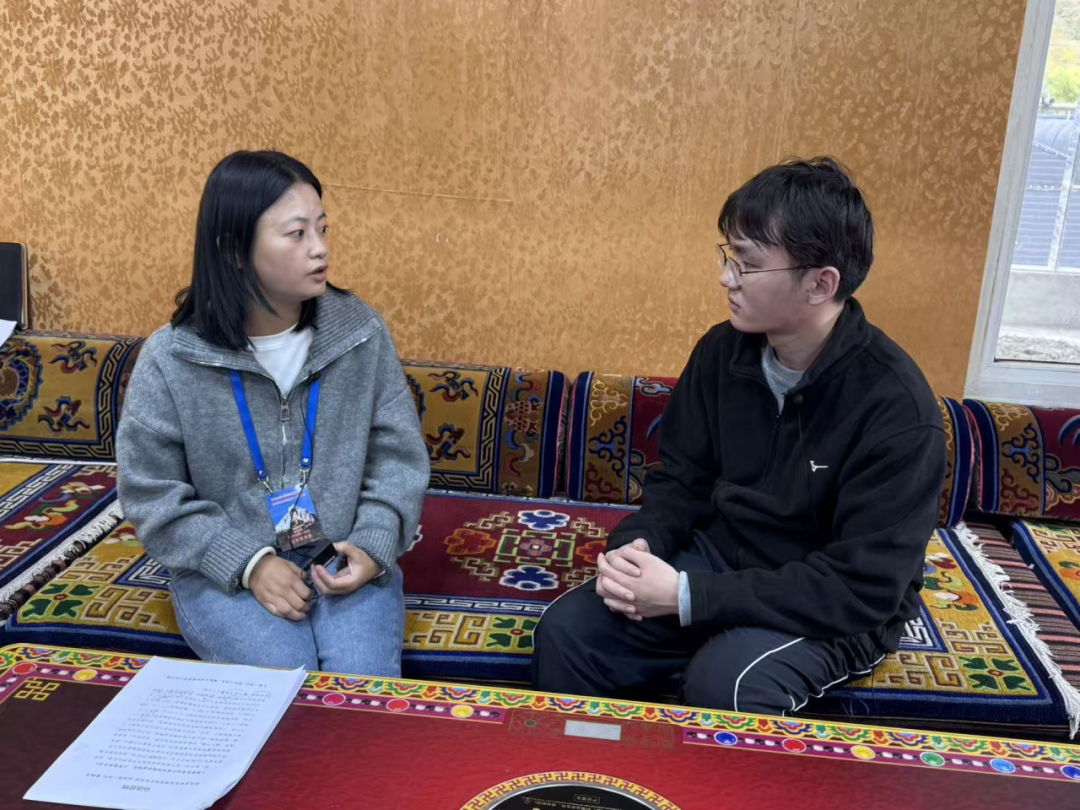 ▲中国人民大学应用经济学院本科生侯哲禹访谈新龙县雄龙西乡乡党委书记龙青多吉
