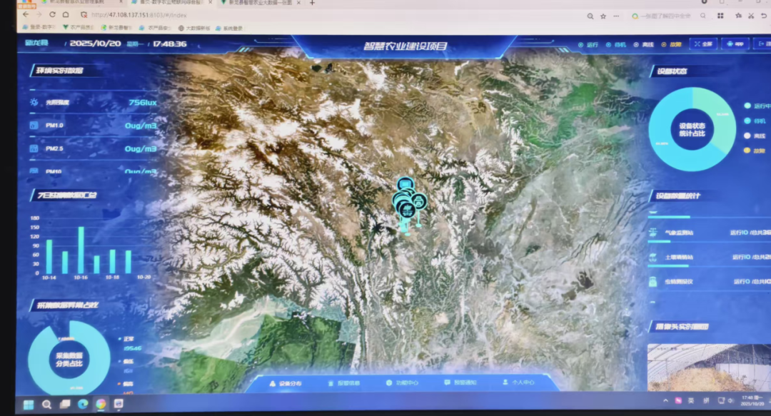 10月20日下午,访谈团队从雄龙西乡提巴村出发前往农科所农业智慧中心,参观新龙县智能农业管理系统。