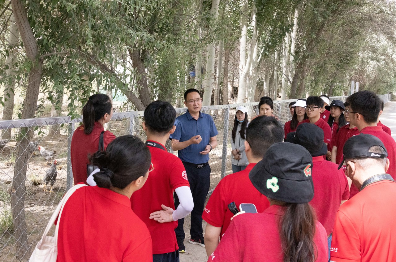 兵团是在国内其他地区少见的体制,新疆生产建设兵团是一个与新疆维吾尔自治区并列的省级行政区,实行“兵团-师-团”三级行政体制,其中师对应县级市,团对应乡镇。兵团的任务,一方面是屯垦戍边,另一方面是自力更生、发展经济。兵团也称为“中国新建集团公司”,可以看作是一家集农业、工业、交通、建筑、商业,承担经济建设任务的国有大型企业,兵团的人员被称为职工,他们也是普通公民,而不是现役军人。此次叶城县的调研,我们有幸深入农三师二牧场,揭开兵团的神秘面纱。二牧场南依昆仑山脉,是喀什地区夏季避暑的圣地。带我们调研牧场的左场长从小就生长在兵团,他的父母也是兵团职工,像左场长家庭这样一代又一代兵团人,为新疆的发展和稳定奉献力量。在调研中我们了解到,二牧场以林果业和畜牧生产为主,这里拥有大片的草场,存栏5.5万头牛羊,开发了林下经济模式,在果园里散养走地鸡,提高单位土地面积上的经济价值。
