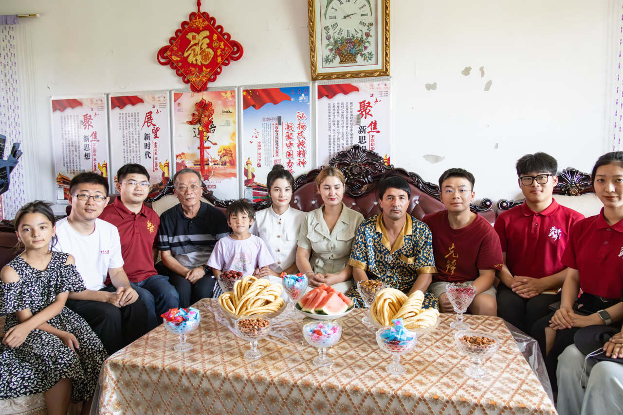 参观之后,调研团来到村委并展开访谈。李浩然老师访谈了乡村振兴局综合办主任卯富红,先锋闯将学员、商学院本科生赵熙萌访谈阿克塔什镇喀拉硝尔村第一书记,先锋闯将学员、新闻学院本科生察汗·吉米希访谈阿克塔什镇副镇长李斌,通过访谈,对叶城县从县城-乡镇-村三个层面的脱贫历程有了更深入的了解。最后,访谈团来到了脱贫户家里,维吾尔族的六口之家热情招待了访谈团,并生动地向先锋闯将学员、商学院本科生王连仲讲述了从山村搬入新房、生活大变样的脱贫故事。