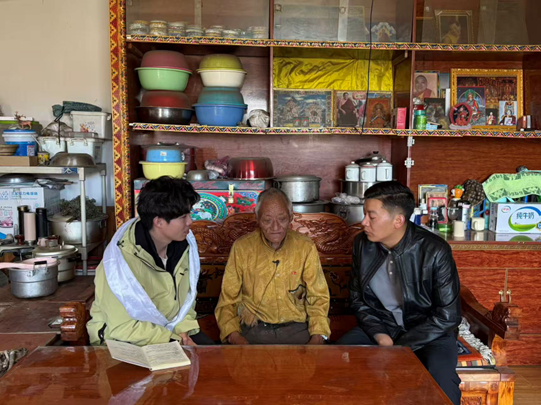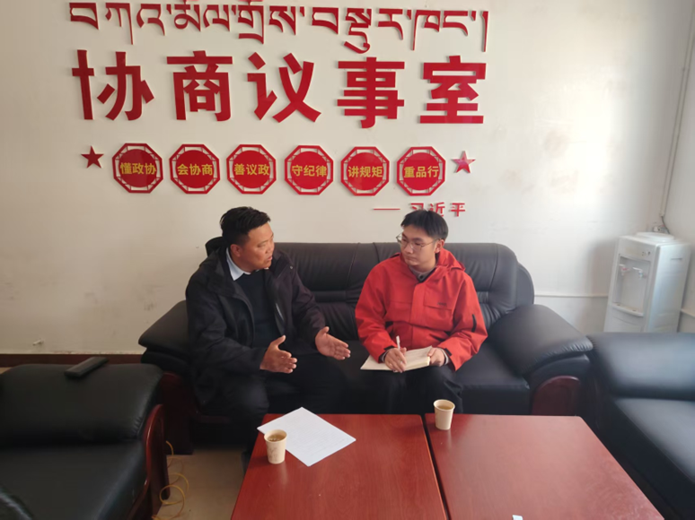 ▲北京大学经济学院讲师、博士后蔡宇涵访谈色达县委常委、副县长、县委农办主任尼美更绒同志