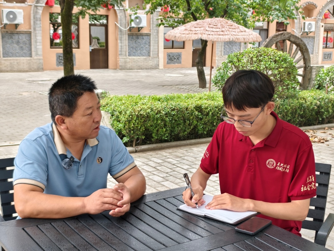 ▲本科生张晨皓访谈姜曹村脱贫户姜西武