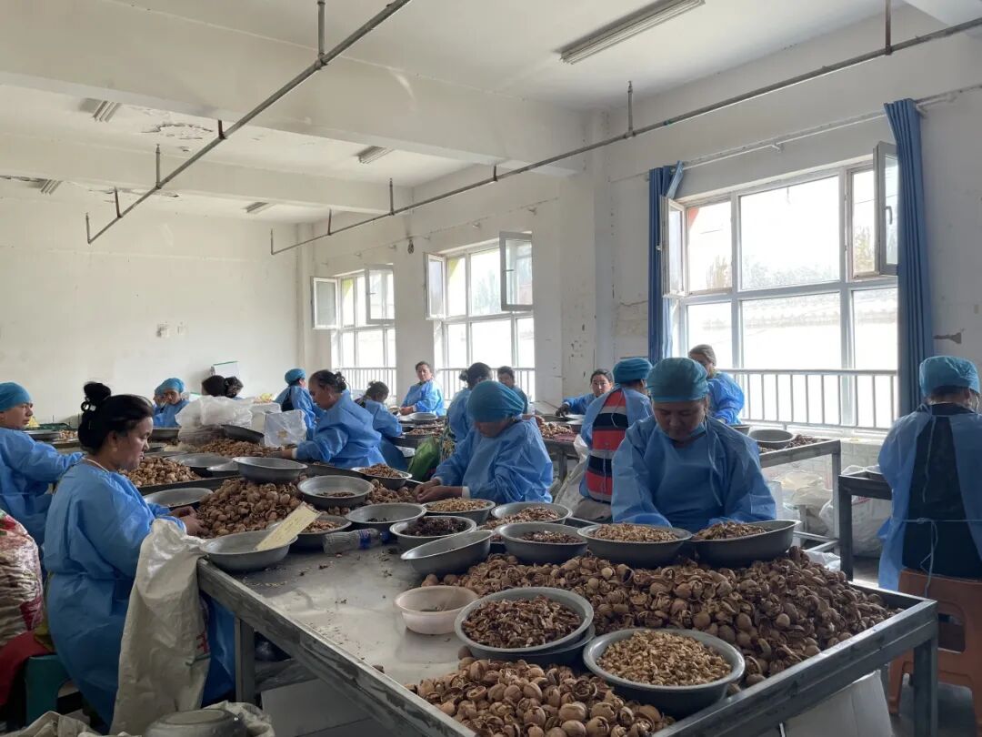 随后,访谈团到达和田市艳丽农副产品农民专业合作社,调研产业带动弱劳动力就业增收情况。该合作社由图尔荪巴柯・萨拉艾合麦提于2019年8月在阿热果勒村发起成立,初期通过集资50万元启动运营,核心业务聚焦核桃的清洗与分解加工。成立之初,合作社便承担起带动弱劳动力就业的社会责任,为辖区25名弱劳动能力人员提供了稳定的就业岗位,初步实现了“产业发展+弱群增收”的目标。