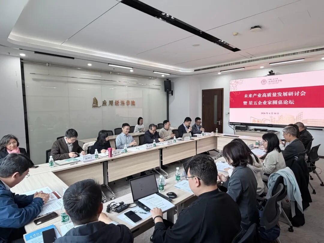 4月10日上午,中国人民大学应用经济学院未来产业高质量发展研讨会暨星五企业家圆桌论坛在中国人民大学明德主楼405会议室召开。会议以未来产业高质量发展为主题,汇聚政府部门、学界专家、科技企业、行业媒体代表,共同研讨未来产业发展重点问题,搭建学界与产业界协同交流平台。