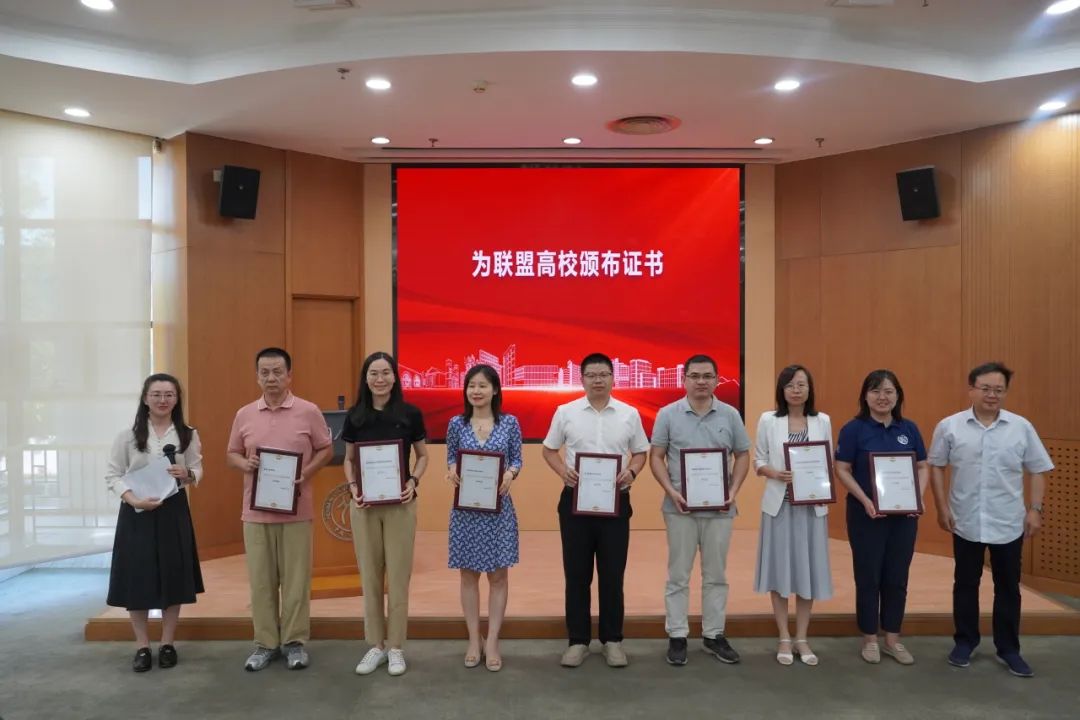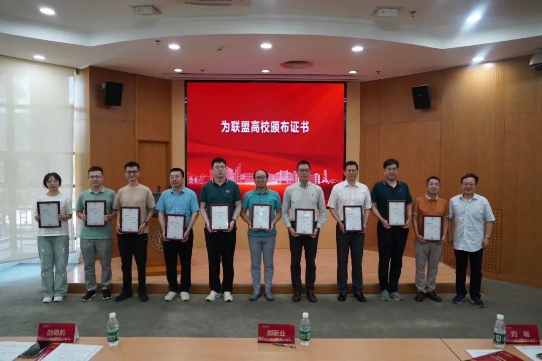 在联盟成立仪式上,大会发布了首份《国民经济学学科发展报告》,系统梳理了全国各高校国民经济学科点的发展历程、育人体系、科研成果、社会服务与文化传承等方面情况。未来将每年持续发布,不断完善,追踪全国各校国民经济学学科的发展动态。来自南京大学、山西财经大学、上海财经大学、首都经济贸易大学、西南财经大学、浙江财经大学、中央财经大学(按拼音首字母排序)等高校代表共同宣读了《国民经济学自主知识体系联盟倡议书》,提出联盟将聚焦重大现实问题研究,构建学术共同体,培育青年师资力量,搭建全国产学研平台,夯实自主教材体系,优化标准化培养方案,打造学科竞赛矩阵以及加强国际传播能力。中国人民大学应用经济学院刘瑞教授为19位高校代表颁布证书并合影留念。