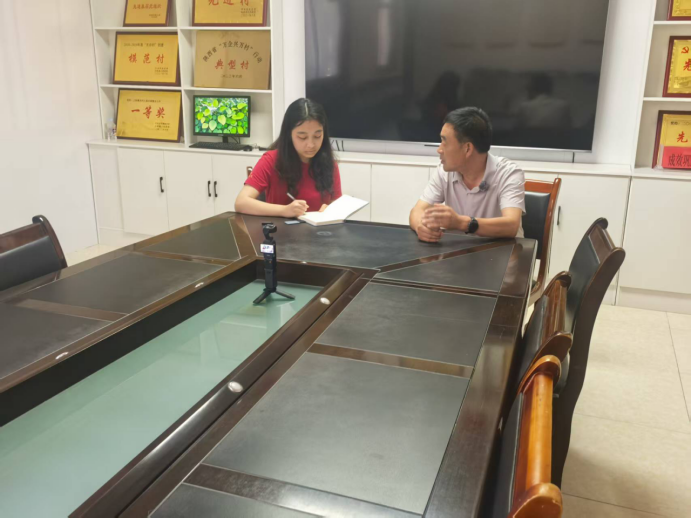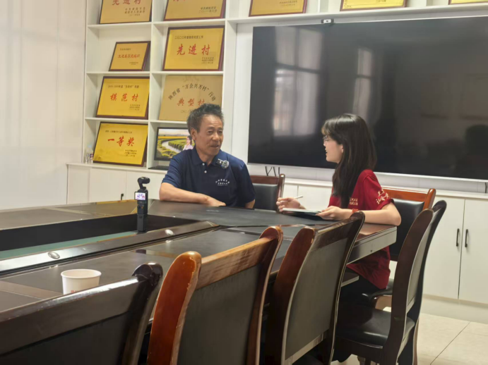 ▲中国人民大学本科生蒋佳珈访谈土桥镇镇头村党支部书记