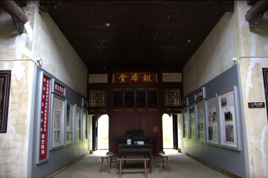 ▲调研团在小布镇中国工农红军第一部无线电侦察台旧址前合影