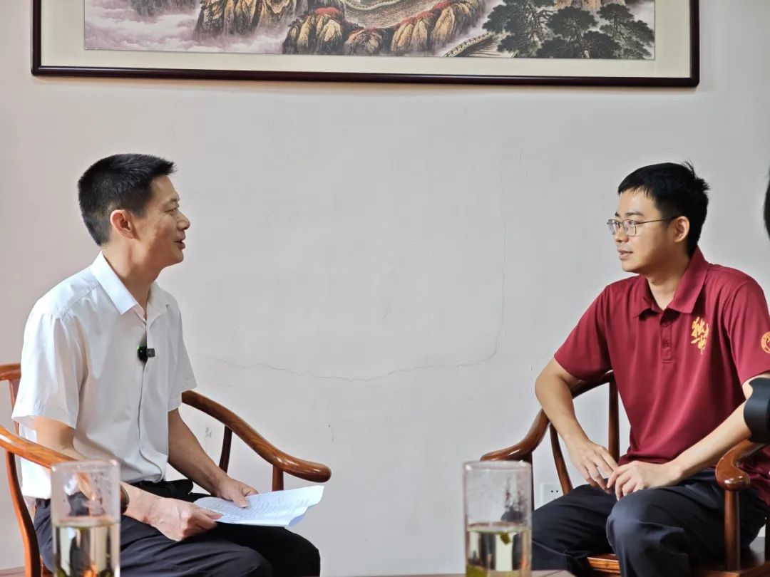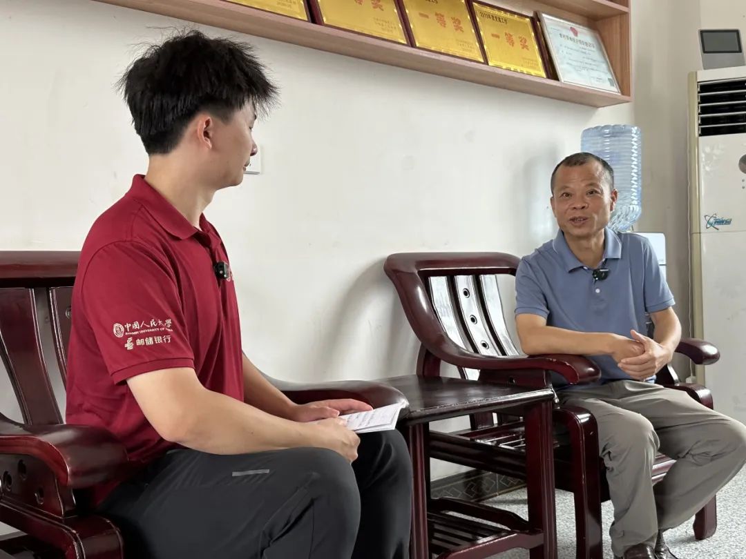 ▲应用经济学院本科生李佳俊访谈陂下村驻村第一书记陈春平