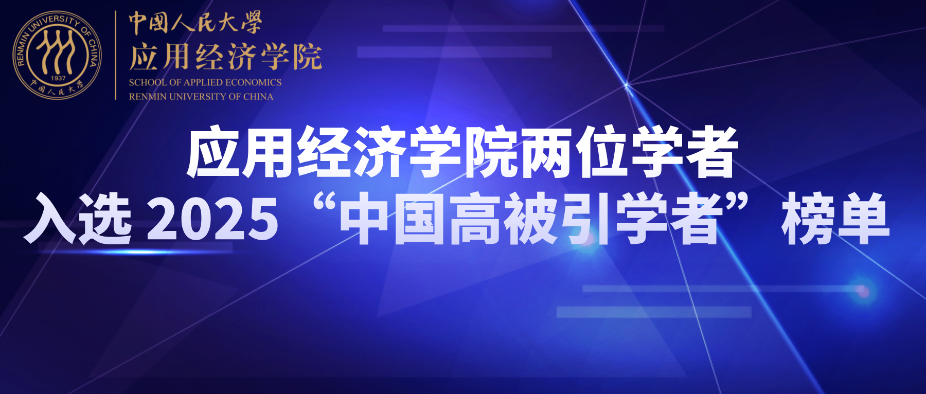 应用经济学院魏楚教授、蒋黎副教授入选 2025“中国高被引学者”榜单