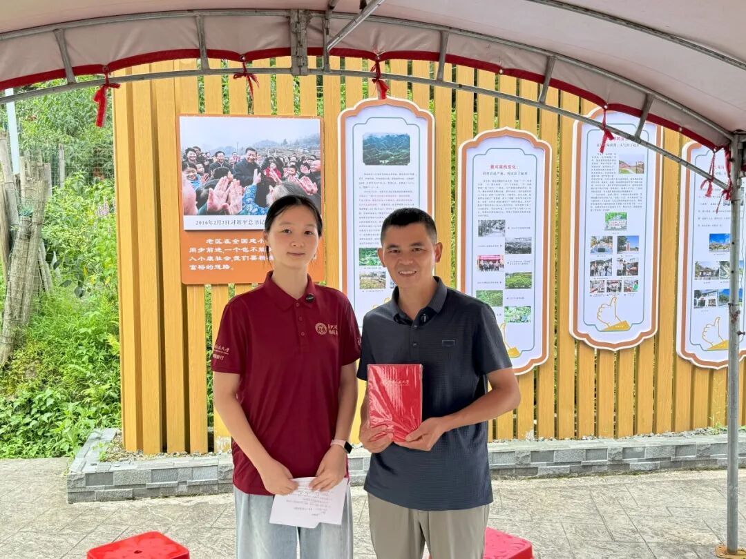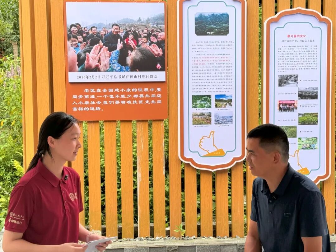 ▲中国人民大学应用经济学院本科生余静溢访谈马源村村主任陈春玉