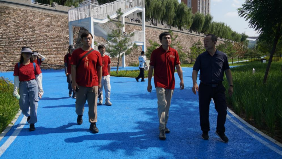 7月29日上午,调研团队抵达黄河边的黄河滩地生态长廊,深入了解黄河流域生态保护与高质量发展实践。作为黄河沿岸生态治理重点工程的一部分,该项目通过系统治理黄河滩地实现生态效益与社会效益的同步提升。滩地生态长廊采取“堤坝加固+滩涂治理+生态修复”的方案,完成了对黄河吴堡沿岸河段的治理,形成了长达几公里的滩涂生态长廊。一方面通过生态治理提升植被覆盖率,显著减少了由于水土流失进入黄河的泥沙量;另一方面生态长廊为周边民众提供了绿色便捷的城市活动空间,提升人民幸福感。同时,生态长廊建设了智能化的水文监测系统,实时掌握黄河水位、泥沙量等动态指标,为黄河治理提供了重要数据依托。在运营方面,水利局协同蓝天救援团队对生态长廊进行协同管理、定期巡查,并根据黄河水位情况及时调整生态长廊对群众开放的情况。