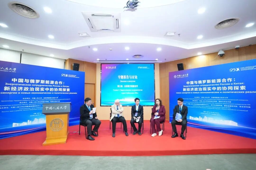 第三场专题讨论环节,圣彼得堡国立经济大学副教授斯坦尼斯拉夫·巴比奇、中国人民大学和平与发展学院助理教授马科伟、纳塔利娅·萨拉哈诺娃、中国人民大学应用经济学院助理教授郑弘浩围绕中俄与全球南方的能源合作路径、技术转移落地、融资机制创新等主题进行深入研讨。