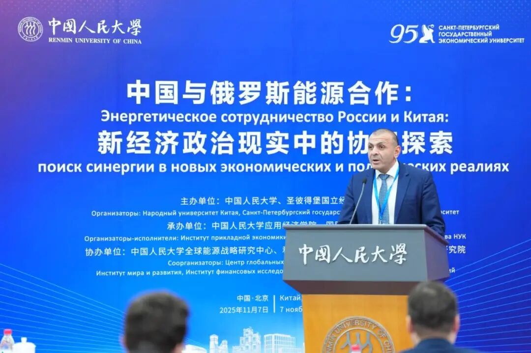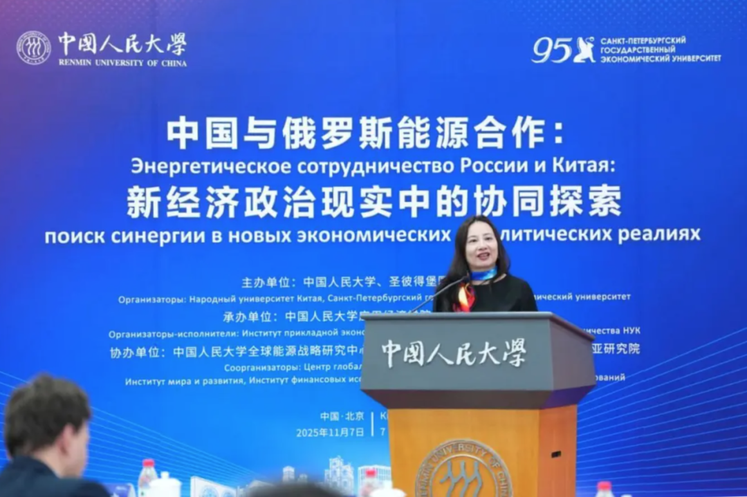 11月7日,由中国人民大学与俄罗斯圣彼得堡国立经济大学联合主办的“中国与俄罗斯能源合作:新经济政治现实中的协同探索”能源对话会议举办。来自中俄两国能源领域的高校智库与企业界的代表齐聚一堂,围绕能源安全、低碳转型、全球南方合作与能源科技前沿等关键议题展开深入研讨,为推动中俄能源合作迈向更宽领域、更深层次、更高水平凝聚共识、汇聚智慧。