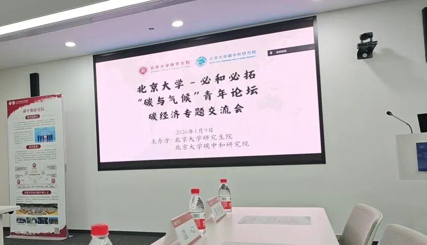 1月9日,由北京大学碳中和研究院等主办的北京大学-必和必拓“碳与气候”青年论坛——碳经济专题交流会举行。中国人民大学应用经济学院2025级碳经济硕士研究生吴航、黄冠霖在学院教授陈占明指导下完成的论文《电力企业气候压力测试——基于碳市场冲击》获评“优秀论文”。