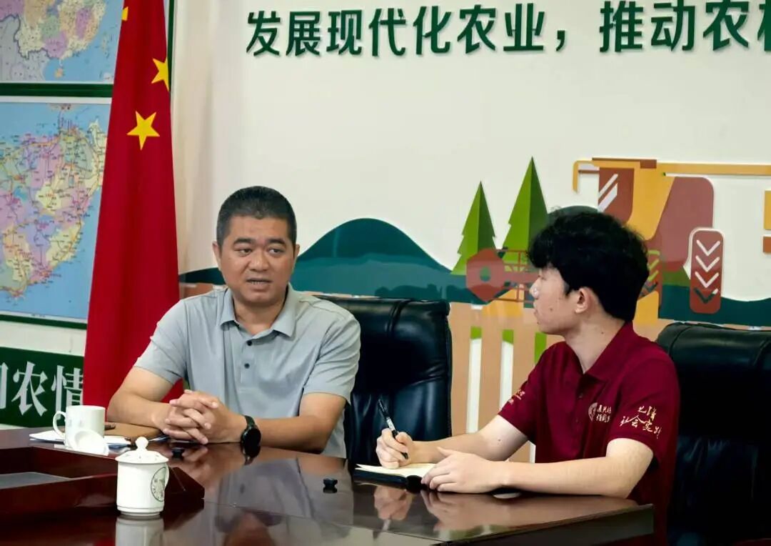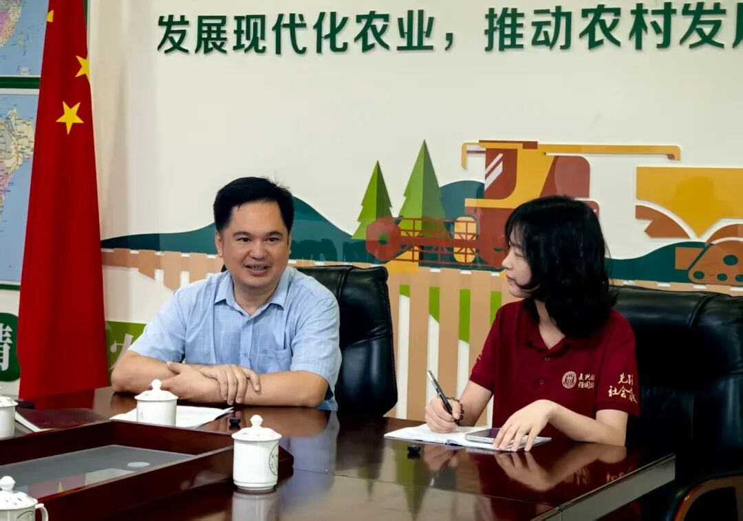 ▲应用经济学院本科生唐诗韵访谈白沙县商务局局长(原白沙县打安镇镇长)周聪
