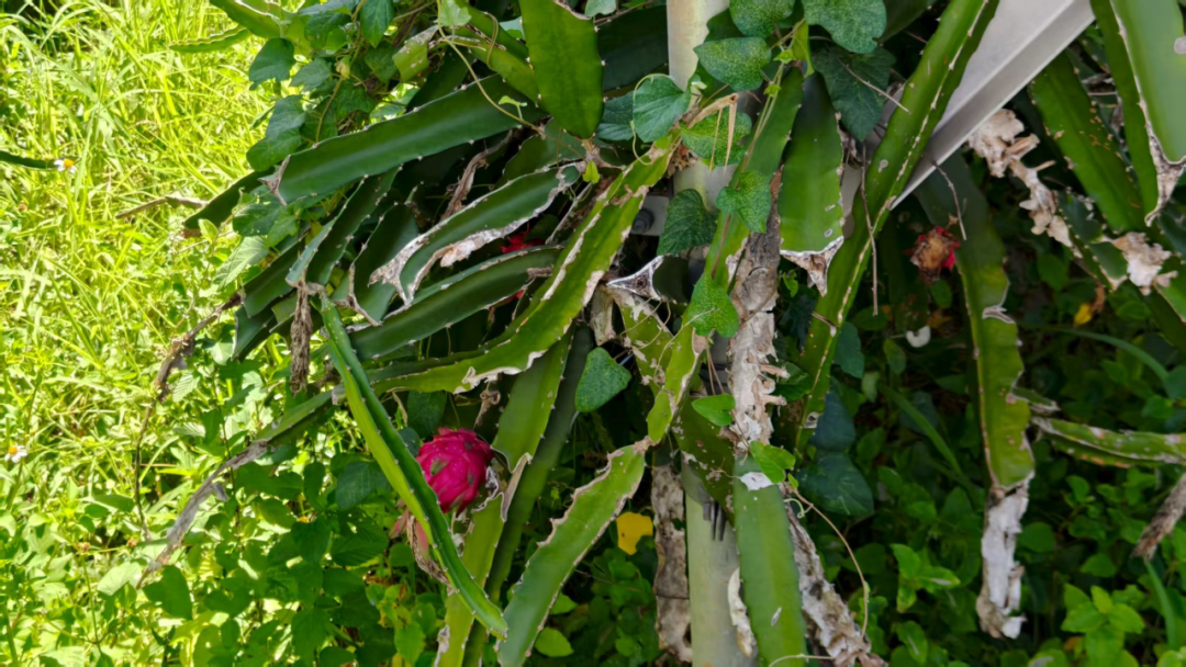 同时为了提升土地综合利用效率并进一步增收,光伏项目采用农光互补模式,在光伏板下因地制宜种植火龙果、斑斓叶、广藿香等经济作物,这种做法方便用电补光,保证产出,并且提升了单位面积土地的产出效益,为当地农业结构调整和农民增收开辟新的路径。