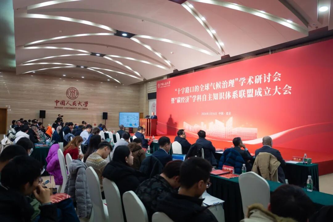 为加快建构中国自主的“碳经济”知识体系,服务碳达峰碳中和重大战略部署,在全球气候治理面临方向性抉择与规则重塑的关键阶段系统阐释中国立场、中国主张与中国方案,1月16日,由中国人民大学主办,中国人民大学应用经济学院、中国人民大学全球能源战略研究中心、中国南方电网能源发展研究院、中国人民大学和平与发展学院承办的“十字路口的全球气候治理”学术研讨会暨“碳经济”学科自主知识体系联盟成立大会举办。