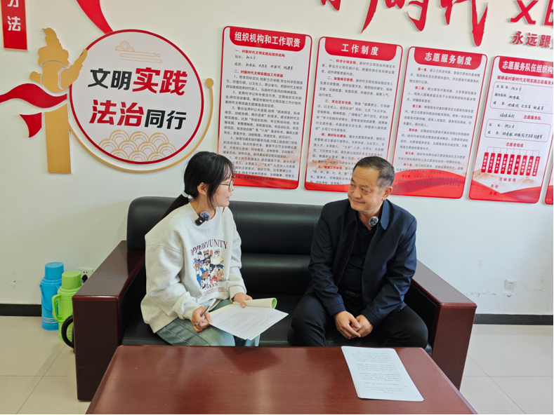 ▲中国人民大学应用经济学院博士生李雪琴访谈上谷镇党委书记黄建永